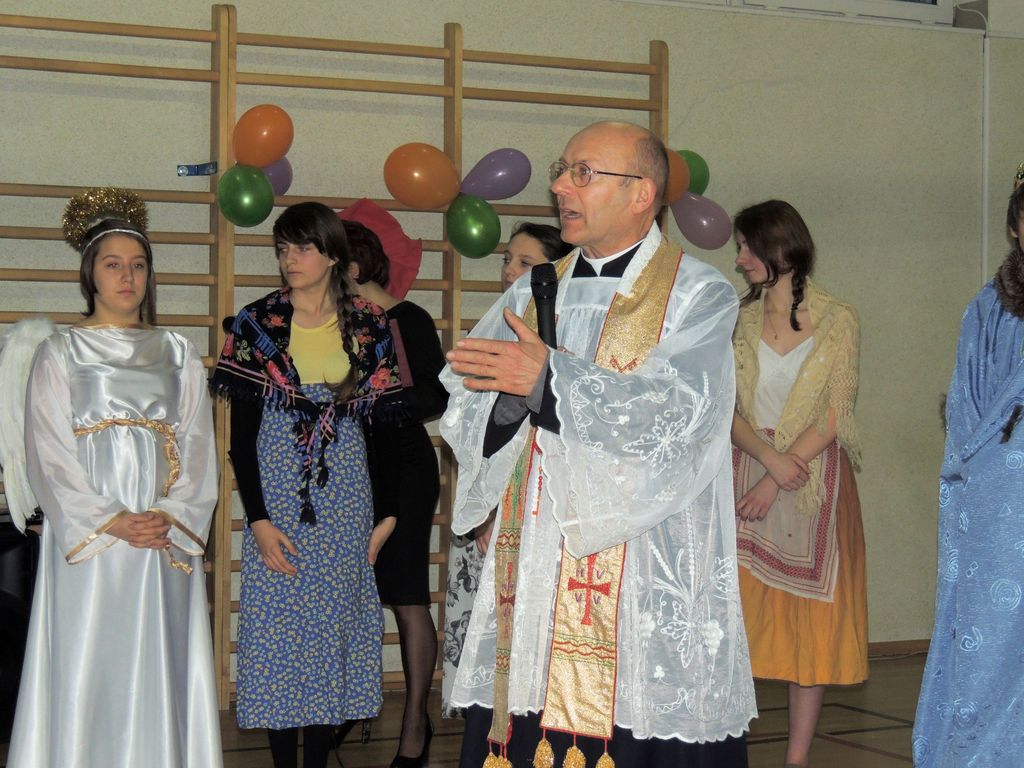 W pierwszej kolejności wystąpił chór dziecięcy, a zaraz potem młodzież gimnazjalna zaprezentowała bożonarodzeniowe jasełka. Ogromne zainteresowanie wzbudziło pojawienie się na balu Św. Mikołaja, który przybył do dzieci z workiem pełnym przepysznych cukierków.