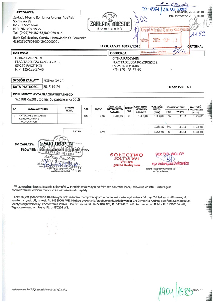"Święto ziemniaka z pieczeniem prosiaka w sołectwie Wolica" z dnia 10.10.2015 r. - rozliczenie Szczegóły Opublikowano: sobota, 06, luty 2016 23:29 Super User