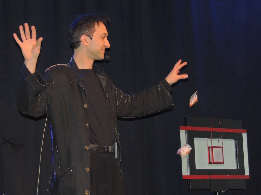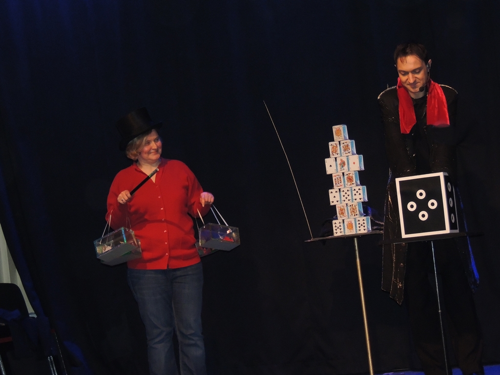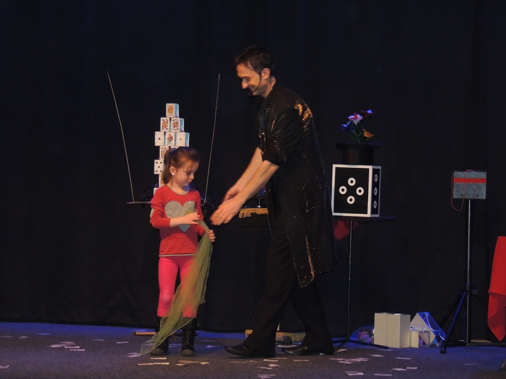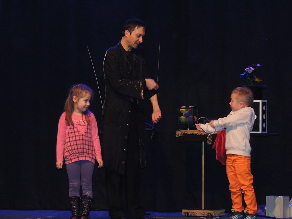 Prawie godzinę frapował młodą i bardzo młodą publiczność swoimi nieprzeciętnymi zdolnościami. Niektóre z dzieci zapraszane były na scenę do aktywnego uczestnictwa w magicznych pokazach. Dzieci były bardzo podekscytowane i zaciekawione, a widać to po skupionych minkach maluchów na wypełnionej po brzegi widowni. Głośnymi brawami nagradzały iluzjonistę i jego pomocników. Niesamowite wrażenie wywarł latający stolik, który choć wyglądał na ciężki i masywny z łatwością unosił się nad sceną.