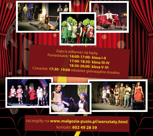 Warsztaty teatralne dla dzieci i młodzieży Szczegóły Kategoria: News Opublikowano: piątek, 22, sierpień 2014 22:26 Super User