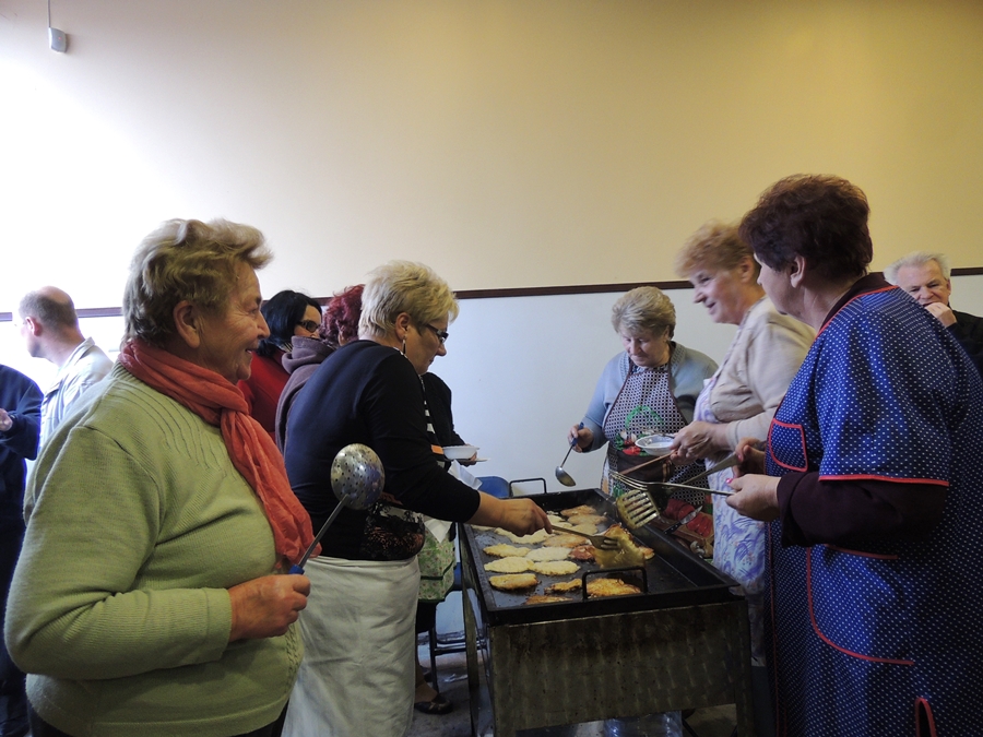 W tym miejscu nie da się nie wspomnieć o obrosłych już niemal w legendę plackach ziemniaczanych – palce lizać! Widać nie jest to tylko moje zdanie, bo choć potraw z ziemniaków było więcej, to kolejka oczekujących chętnych na gorące, chrupiące placki wcale nie malała. A ponieważ placki ziemniaczane należą do potraw dość kalorycznych (1 szt. = 100-200 kcal w zależności od użytych składników i wielkości placka), to wieczorem przy  dyskotekowej muzyce, na bieżąco można było „wytupać” nadprogramowe kalorie.