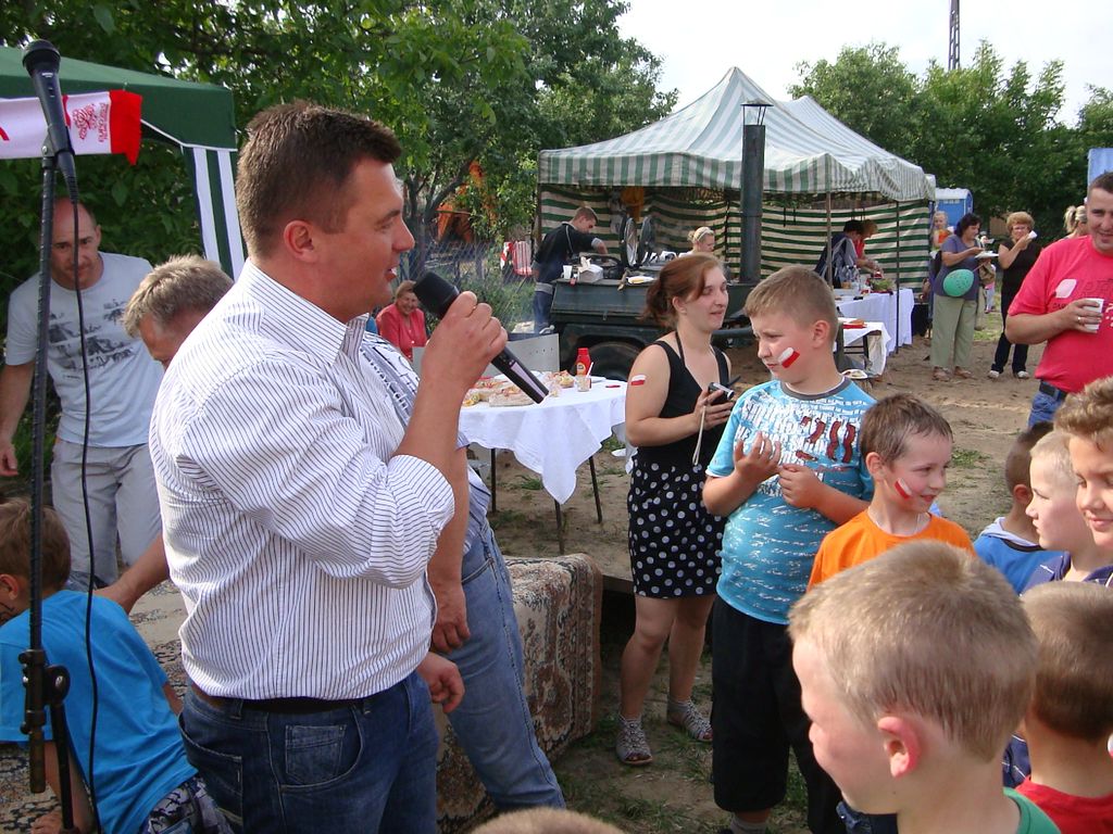 Przybyli zaproszeni goście, Przewodniczący Rady Marek Brodziak, Burmistrz M i GM Radzymin Zbigniew Piotrowski, z-ca Burmistrza Andrzej Siarna oraz radni miejscy, z radością powitali wszystkich uczestników. Z wielkim uznaniem odnieśli się do samodzielnej, całkowicie społecznej inicjatywy integracji mieszkańców. Tak duża impreza nie mogła odbyć się bez sponsorów i zaangażowania miejscowej społeczności. Wszystkim ofiarodawcom serdecznie dziękujemy.