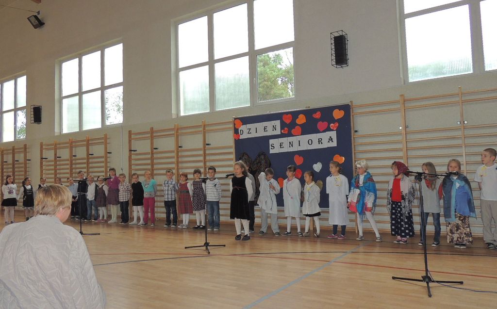 Wszystkich przybyłych na spotkanie gości przywitał pan dyrektor szkoły jednocześnie składając najlepsze życzenia wszystkim seniorom, po czym oddał głos małym artystom. Dzieci uświęciły spotkanie recytując wiersze i śpiewając piosenki. Po zakończeniu części artystycznej wszystkich gości zaproszono na słodki poczęstunek.