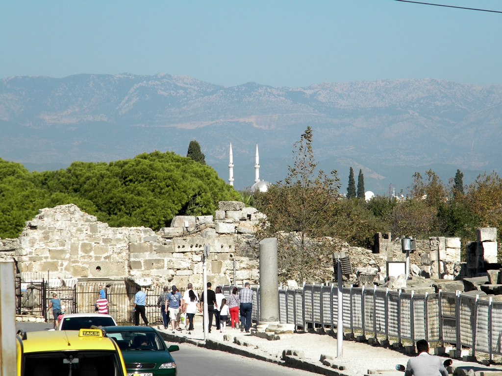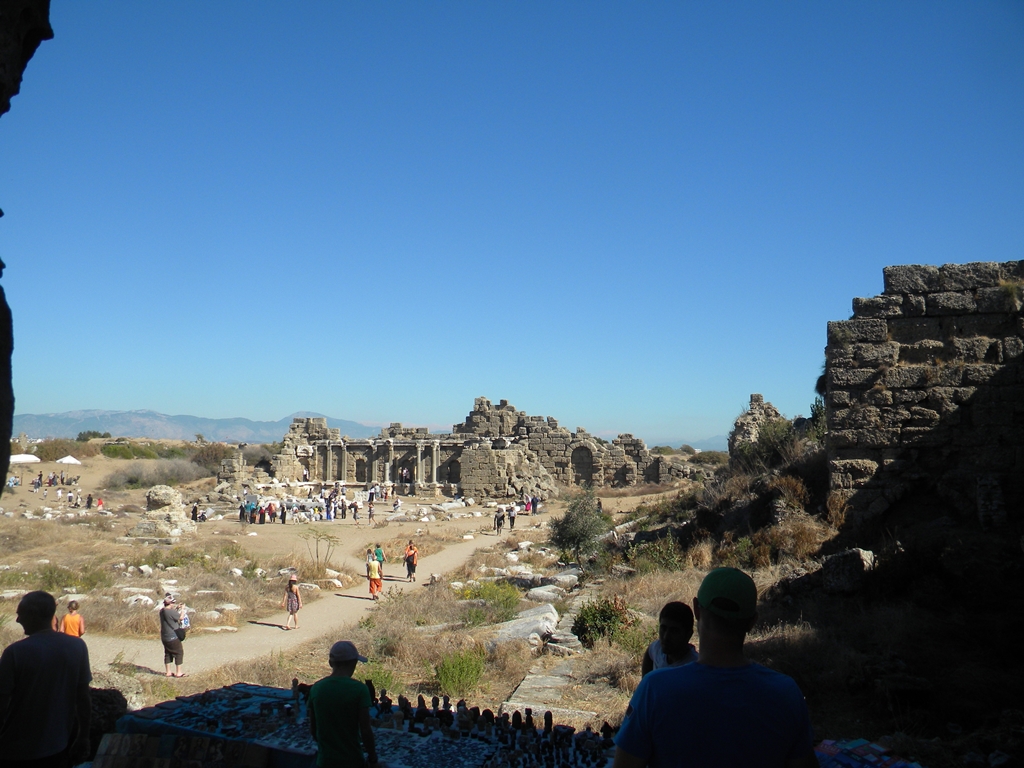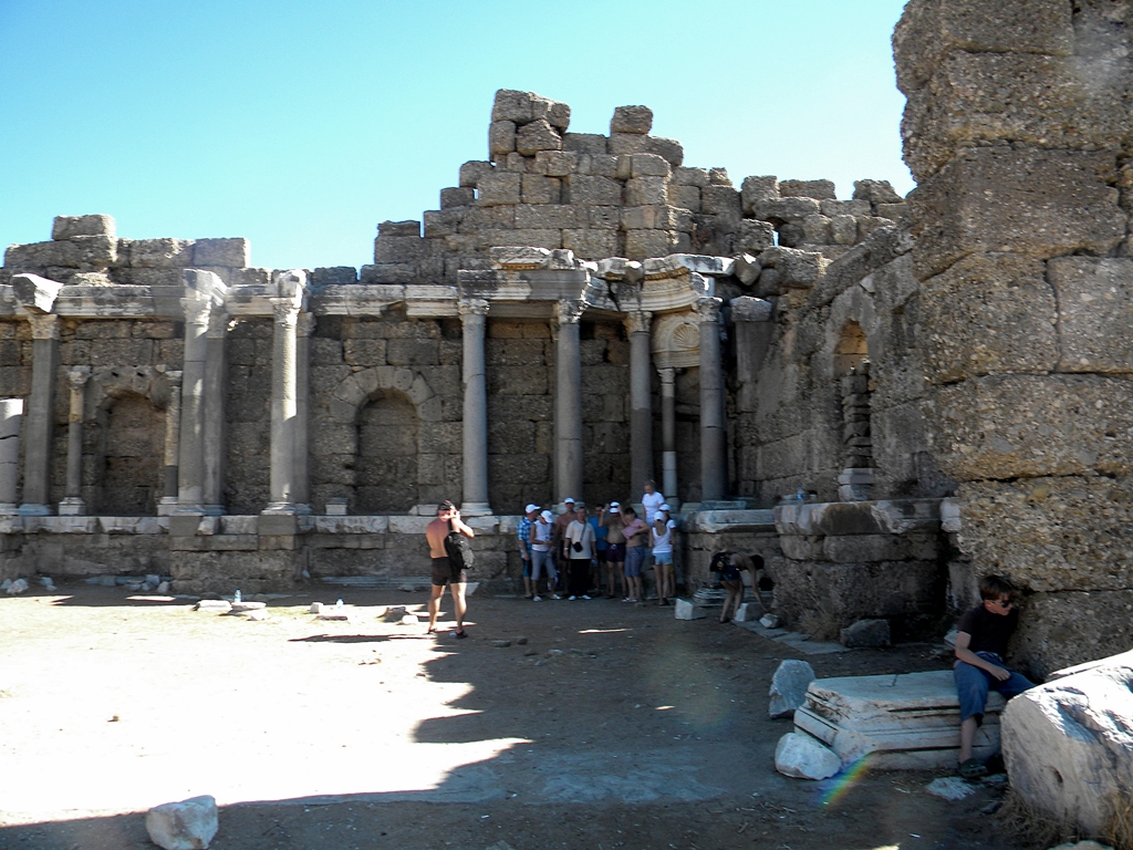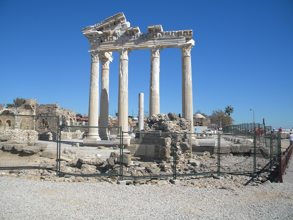 To tutaj wkomponowane są w pejzaż starożytne ruiny Świątyni Apolla i Ateny pochodzące z II w.n.e. W Side znajdują się również pozostałości największych teatrów w Anatolii. Mogło w nim zasiąść jednocześnie 15 tys. widzów.