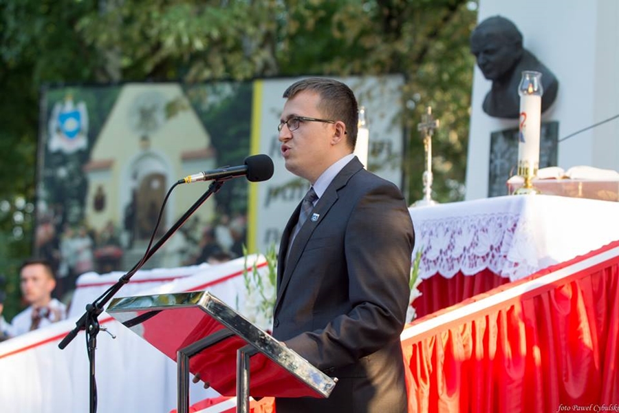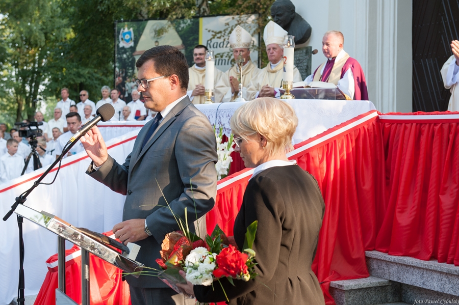 Burmistrz Miasta i Gminy Radzymin Krzysztof Chaciński imiennie powitał znamienite osobistości, zaproszonych gości oraz licznie przybyłych mieszkańców. W swym przemówieniu mówił o niepodległości, znaczeniu bitwy w dziejach Polski i Europy, wspomniał nazwiska bohaterów tamtych wydarzeń.