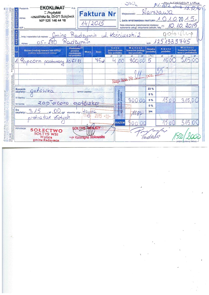 "Święto ziemniaka z pieczeniem prosiaka w sołectwie Wolica" z dnia 10.10.2015 r. - rozliczenie Szczegóły Opublikowano: sobota, 06, luty 2016 23:29 Super User