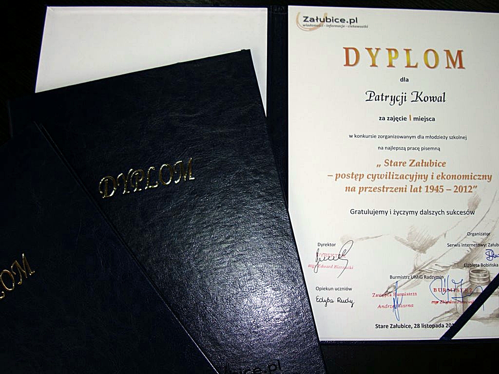 Laureaci konkursuKonkurs na najlepszą pracę pisemną pt. „Stare Załubice – postęp cywilizacyjny i ekonomiczny na przestrzeni lat 1945 – 2012” ogłoszony dla młodzieży szkolnej, został rozstrzygnięty.