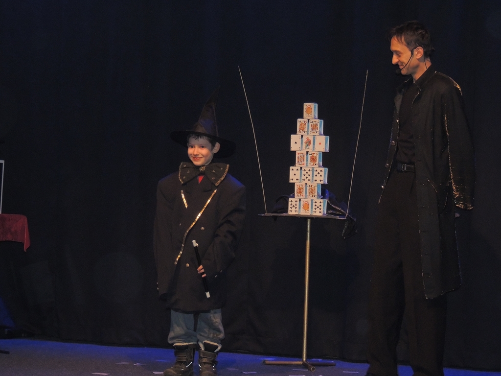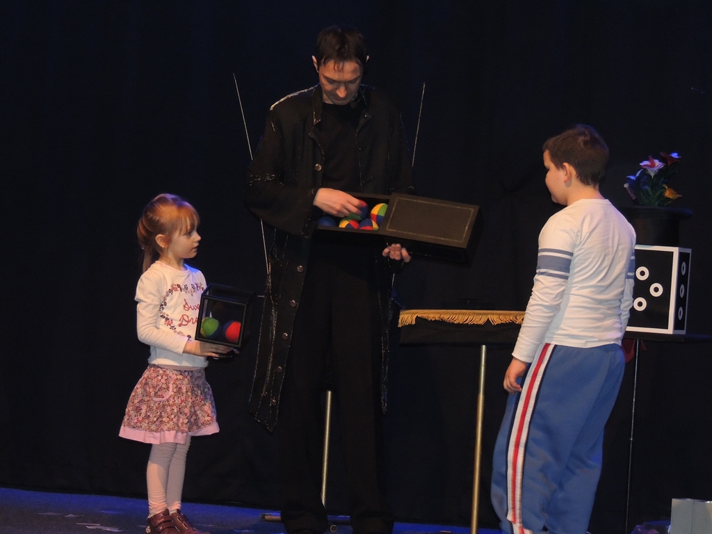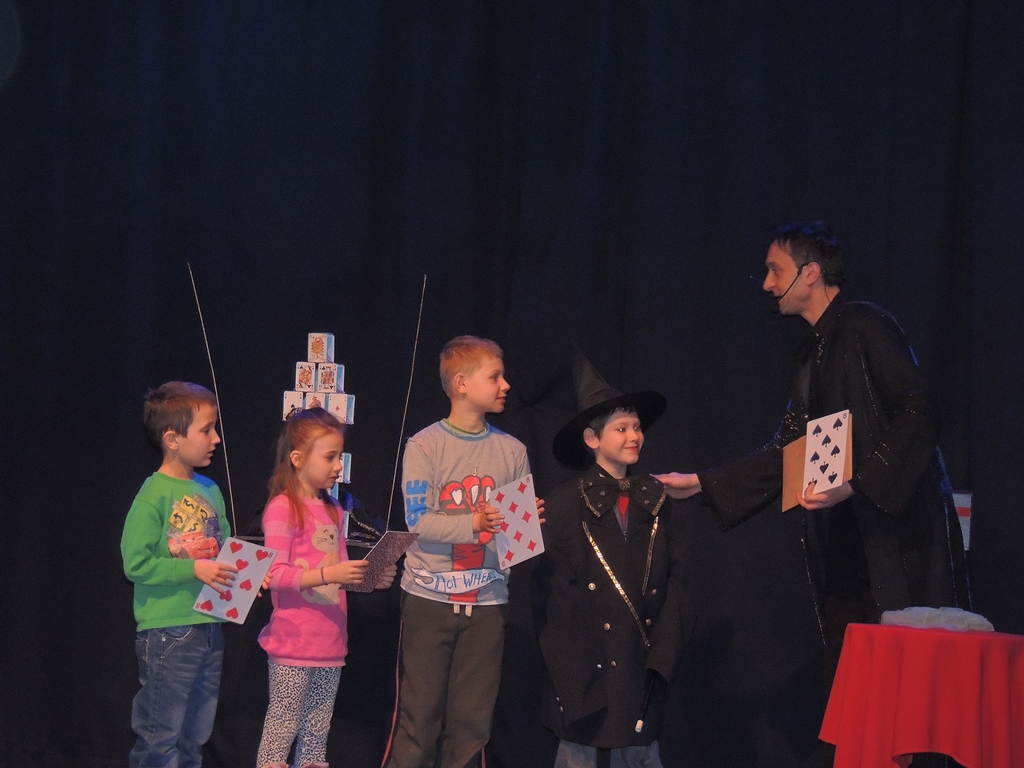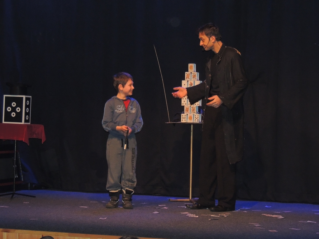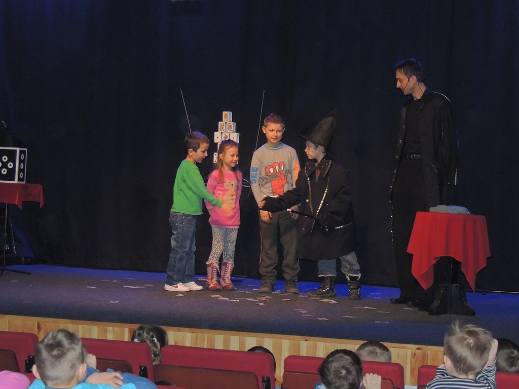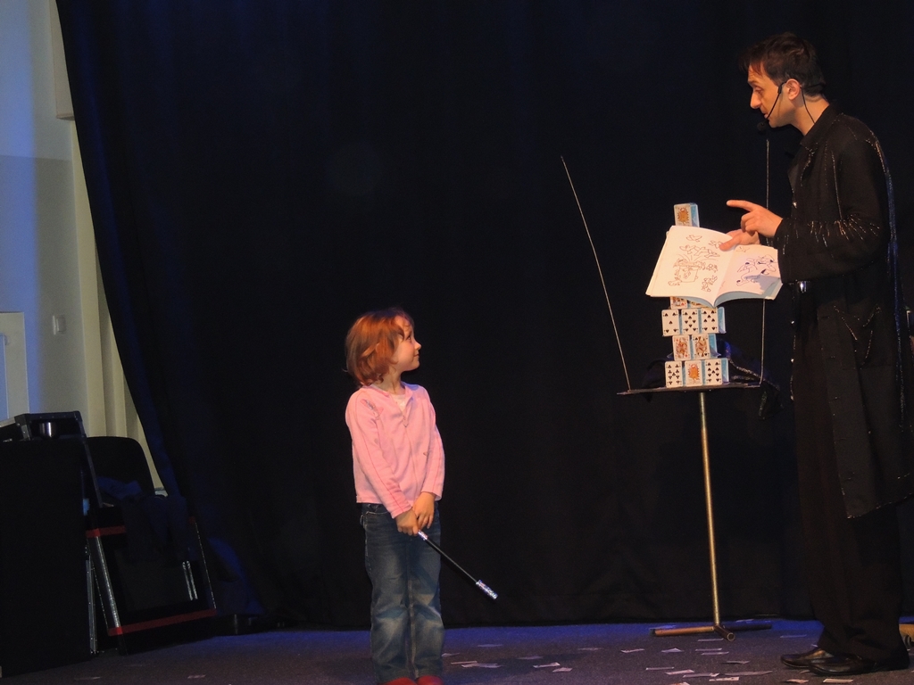 Prawie godzinę frapował młodą i bardzo młodą publiczność swoimi nieprzeciętnymi zdolnościami. Niektóre z dzieci zapraszane były na scenę do aktywnego uczestnictwa w magicznych pokazach. Dzieci były bardzo podekscytowane i zaciekawione, a widać to po skupionych minkach maluchów na wypełnionej po brzegi widowni. Głośnymi brawami nagradzały iluzjonistę i jego pomocników. Niesamowite wrażenie wywarł latający stolik, który choć wyglądał na ciężki i masywny z łatwością unosił się nad sceną.