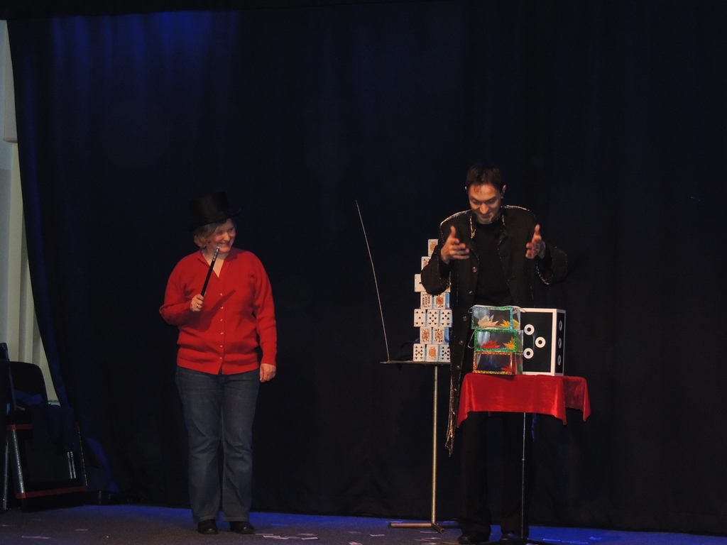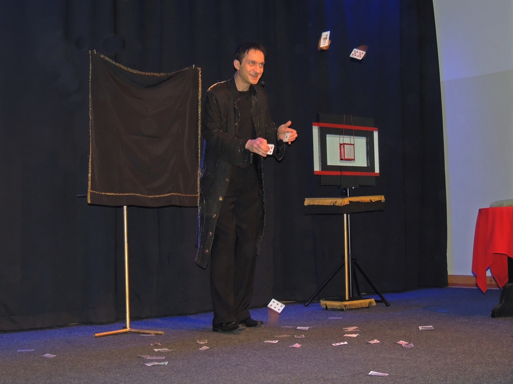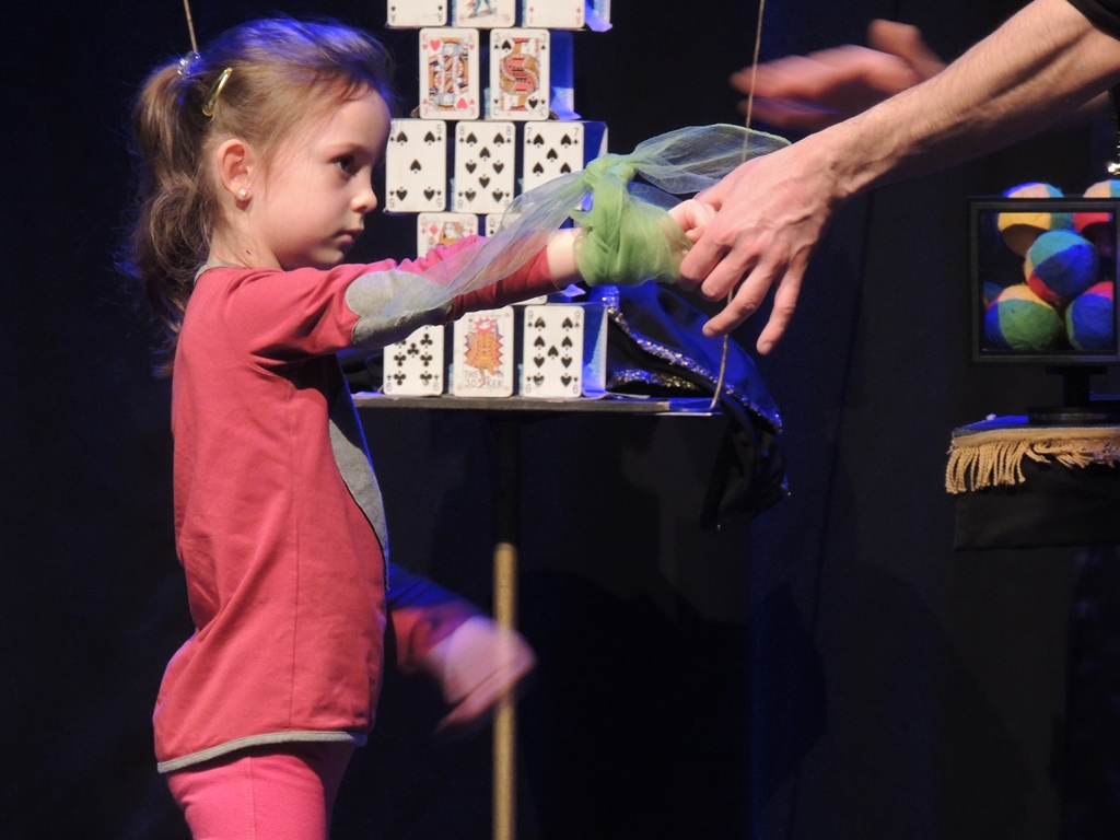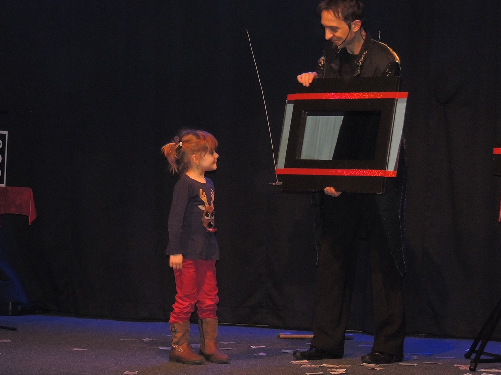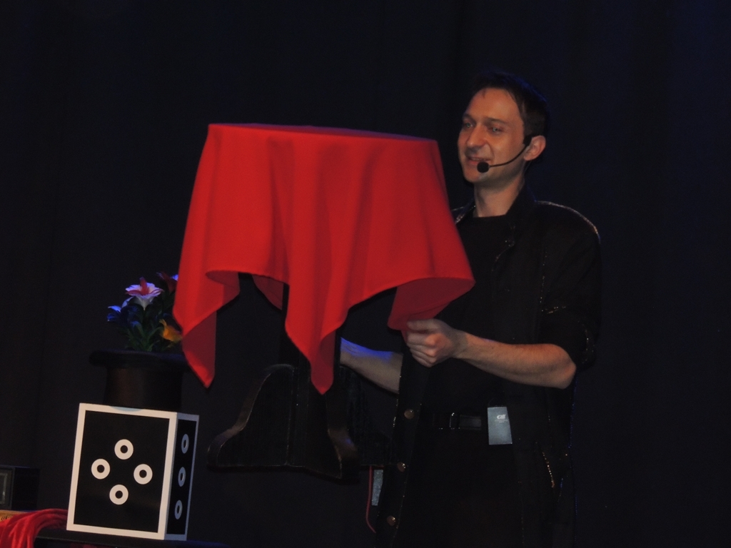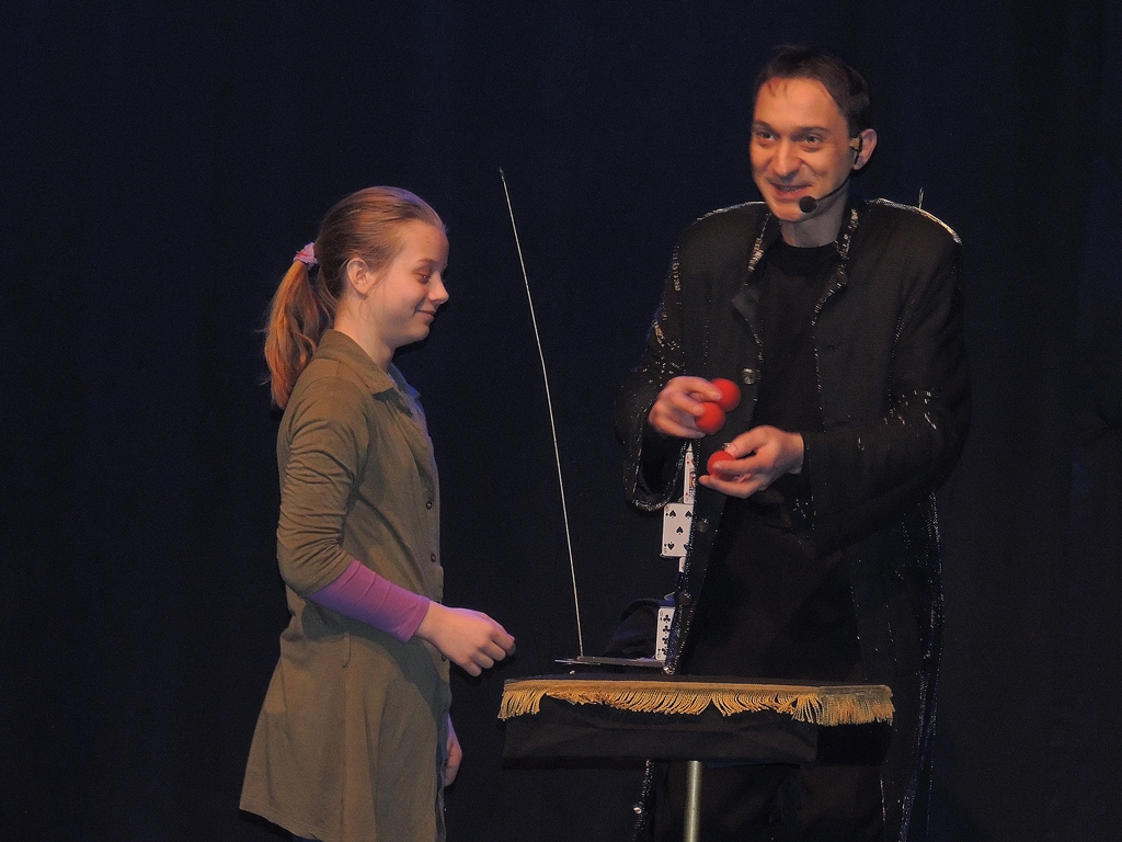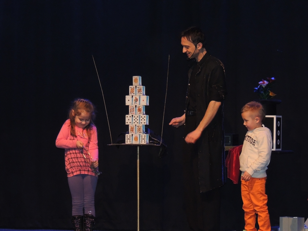 Prawie godzinę frapował młodą i bardzo młodą publiczność swoimi nieprzeciętnymi zdolnościami. Niektóre z dzieci zapraszane były na scenę do aktywnego uczestnictwa w magicznych pokazach. Dzieci były bardzo podekscytowane i zaciekawione, a widać to po skupionych minkach maluchów na wypełnionej po brzegi widowni. Głośnymi brawami nagradzały iluzjonistę i jego pomocników. Niesamowite wrażenie wywarł latający stolik, który choć wyglądał na ciężki i masywny z łatwością unosił się nad sceną.