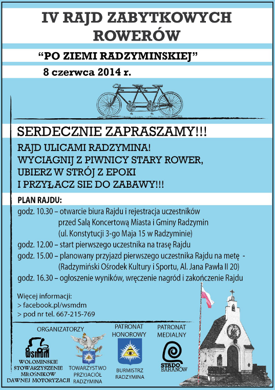 godz. 10.30 – otwarcie biura Rajdu i rejestracja uczestników przed Salą Koncertową Miasta i Gminy Radzymin (ul. Konstytucji 3-go Maja 15 w Radzyminie)