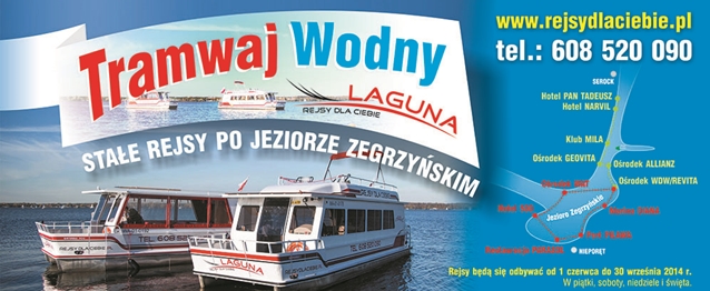 Od 1 czerwca ruszył projekt rejsów po Jeziorze Zegrzyńskim.  Statki będą pływać  w piątki, soboty, niedziele i święta, dwa razy dziennie na dwóch niezależnych trasach wg stałego rozkładu kursowania aż do 30 września. Na życzenie klienta istnieje możliwość zorganizowania indywidualnego rejsu.