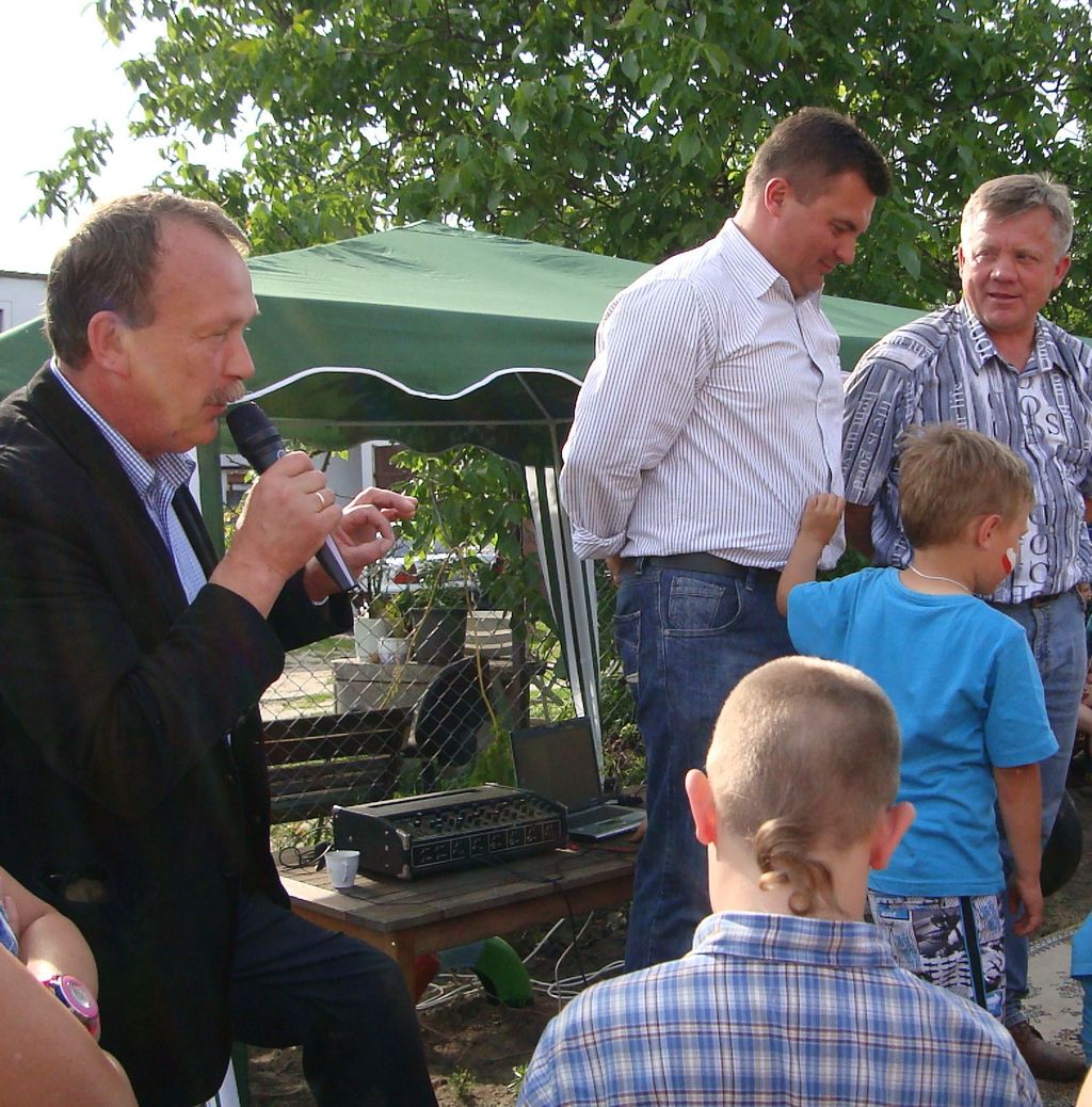 Przybyli zaproszeni goście, Przewodniczący Rady Marek Brodziak, Burmistrz M i GM Radzymin Zbigniew Piotrowski, z-ca Burmistrza Andrzej Siarna oraz radni miejscy, z radością powitali wszystkich uczestników. Z wielkim uznaniem odnieśli się do samodzielnej, całkowicie społecznej inicjatywy integracji mieszkańców. Tak duża impreza nie mogła odbyć się bez sponsorów i zaangażowania miejscowej społeczności. Wszystkim ofiarodawcom serdecznie dziękujemy.